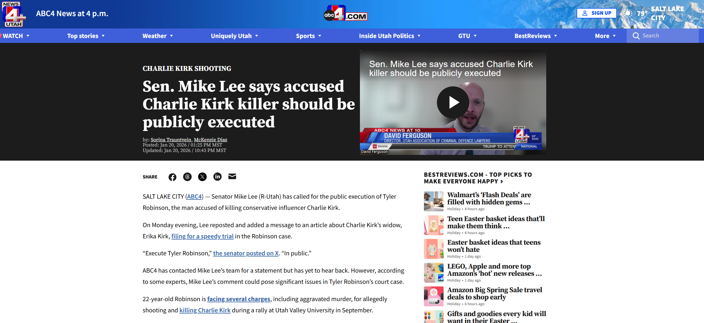 Senator Mike Lee publicly remarks demanding public execution of Tyler Robinson.